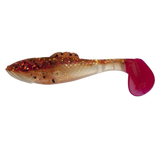 Este un shad care combina materialul foarte moale cu forma apropiata de pestii naturali. Se fabricata in trei culori (TC), obtinute prin turnare cu sau fara glitter. Datorita crestaturilor de la baza cozii naluca evolueaza la cele mai mici vibratii ale varfului lansetei,evolutia sa se apropie de miscarea pestilor vizati de rapitori. Este o naluca versatila,lungimea de 10 cm recomandand-o pentru pescuitul salaului, stiucii si somnului atat pe lacuri cat si pe rauri. Datorita procesului de fabricare a acestor naluci (prin turnarea a trei culori o data) exista posibilitatea ca produsul final sa difere de cel afisat in poza. De asemenea pot exista diferente intre nalucile din acelasi pachet. /span