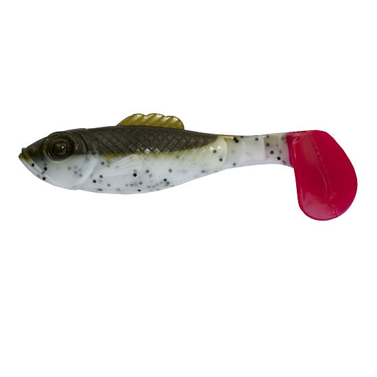 Este un shad care combina materialul foarte moale cu forma apropiata de pestii naturali. Se fabricata in trei culori (TC), obtinute prin turnare cu sau fara glitter. Datorita crestaturilor de la baza cozii naluca evolueaza la cele mai mici vibratii ale varfului lansetei,evolutia sa se apropie de miscarea pestilor vizati de rapitori. Este o naluca versatila,lungimea de 10 cm recomandand-o pentru pescuitul salaului, stiucii si somnului atat pe lacuri cat si pe rauri. Datorita procesului de fabricare a acestor naluci (prin turnarea a trei culori o data) exista posibilitatea ca produsul final sa difere de cel afisat in poza. De asemenea pot exista diferente intre nalucile din acelasi pachet. /span