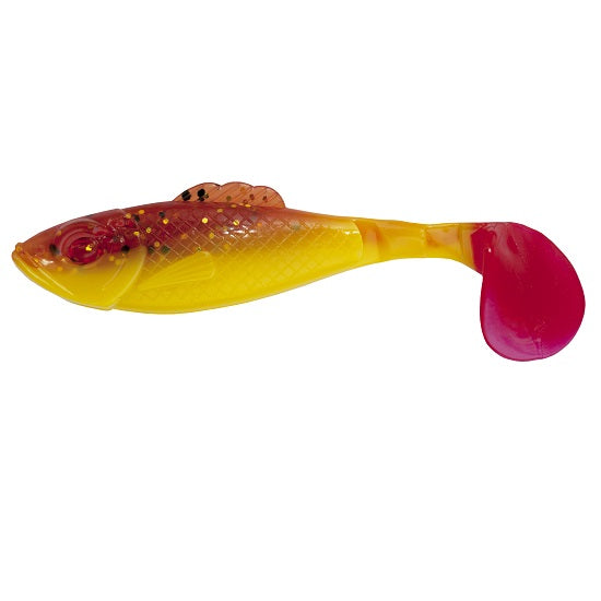 Este un shad care combina materialul foarte moale cu forma apropiata de pestii naturali. Se fabricata in trei culori (TC), obtinute prin turnare cu sau fara glitter. Datorita crestaturilor de la baza cozii naluca evolueaza la cele mai mici vibratii ale varfului lansetei,evolutia sa se apropie de miscarea pestilor vizati de rapitori. Este o naluca versatila,lungimea de 10 cm recomandand-o pentru pescuitul salaului, stiucii si somnului atat pe lacuri cat si pe rauri. Datorita procesului de fabricare a acestor naluci (prin turnarea a trei culori o data) exista posibilitatea ca produsul final sa difere de cel afisat in poza. De asemenea pot exista diferente intre nalucile din acelasi pachet. /span