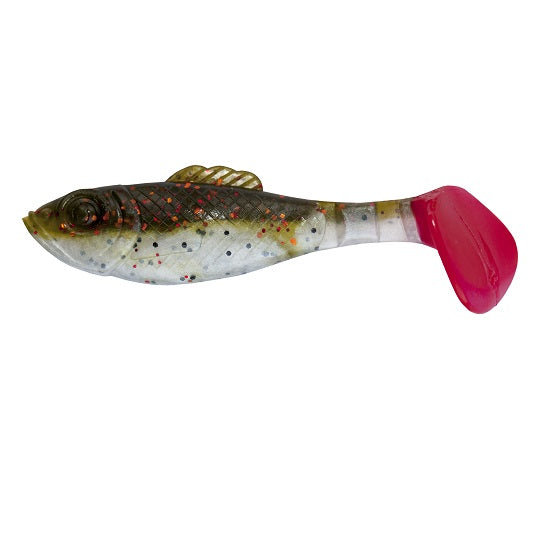 Este un shad care combina materialul foarte moale cu forma apropiata de pestii naturali. Se fabricata in trei culori (TC), obtinute prin turnare cu sau fara glitter. Datorita crestaturilor de la baza cozii naluca evolueaza la cele mai mici vibratii ale varfului lansetei,evolutia sa se apropie de miscarea pestilor vizati de rapitori. Este o naluca versatila,lungimea de 10 cm recomandand-o pentru pescuitul salaului, stiucii si somnului atat pe lacuri cat si pe rauri. Datorita procesului de fabricare a acestor naluci (prin turnarea a trei culori o data) exista posibilitatea ca produsul final sa difere de cel afisat in poza. De asemenea pot exista diferente intre nalucile din acelasi pachet. /span