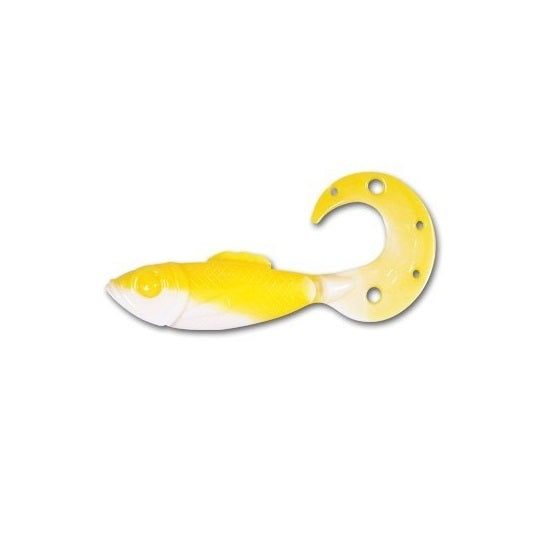 Este o naluca foarte usor de manuit, datorita materialului moale, formei si crestaturilor de la baza cozii. De data aceasta este vorba de o naluca avand corp de shad dar coada de grub, fabricata in culori laminate. Evolutia este surprinzatoare, coada vibratila fiind actionata la cele mai discrete miscari ale varfului lansetei. Este o naluca versatila, recomandata pentru pescuitul salalui si stiucii pe lacuri si rauri. Lungimea de 10,5 cm o face atractiva si la pescuitul somnului./spanDatorita procesului de fabricare a acestor naluci (prin turnarea a doua culori o data) exista posibilitatea ca produsul final sa difere de cel afisat in poza. De asemenea pot exista diferente intre nalucile din acelasi pachet./span