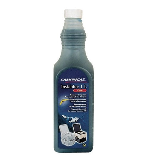 Solutie de curatat toaleta Campingaz Instablue Extra 1L/spanLichidul de toaleta Campingaz Instablue Extra se foloseste in rezervorul de reziduri si previne aparitia mirosurilor si descompunerea excrementelor. Este o solutie concentrata a lichiduluinbsp;spannbsp;Instablue® Standard. spanSolutia nu contide adelhide, acid carbolic (fenol) sau clor si vine cu un capac cu sistem de siguranta pentru copii.Are deasemenea gradatie pentru masurarea cantitatii/spannbsp;./span/span