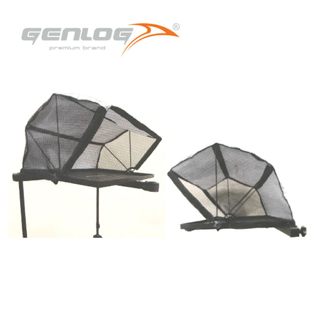 Tava Laterala Genlog cu Umbrar si 2 Picioare telescopice, 65x45.5cmIdeala pentru protectia momelilor atat in zilele insorite de vara cat si in zilele ploioase.2 x picioare telescopice;Protectie parasolar pliabila;Dimensiuni: 65x4.5cm.