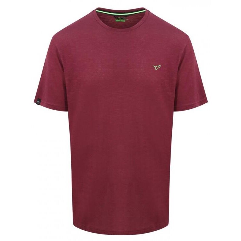 TRICOU KORDA LE LOYAL TEE BURGUNDY MARIME MAcest tricou cu finisaj „piele piersică”, care îi conferă o textură moale, catifelată fiind foarte plăcut la atingere. Este respirabil, ceea ce îl face excelent pentru a fi utilizat vara sau ca tricou sub jachetă în zilele mai reci. Tricoul Loyal prezintă grafica Korda și este disponibil în culorile neagră sau burgund.