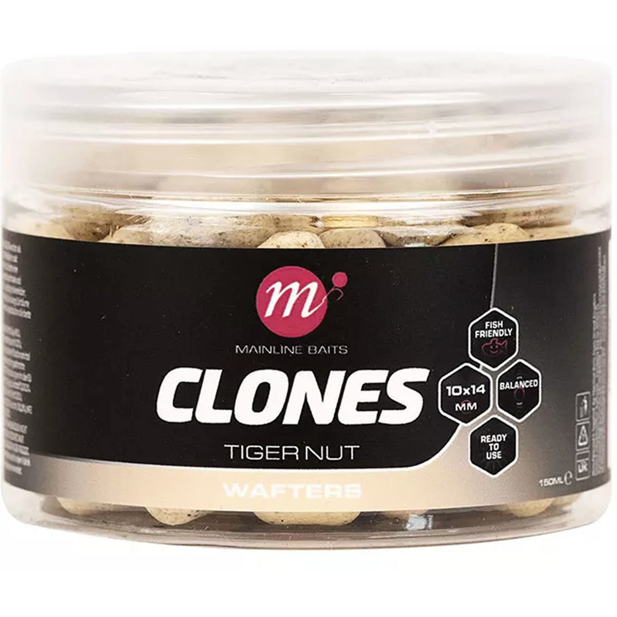 Wafters Mainline Clones Barrel Alune Tigrate, 13mmMainline Clones sunt concepute pentru a vă oferi o momeala de cârlig rezistentă, pe care o puteți pescui peste un pat de particule care se vor potrivi atât cu culoarea, cât și cu gustul. Scopul principal al Clones, așa cum sugerează și numele, este de a „clona” orice particule sau amestec pentru spod pe care îl aruncați și de a-l reproduce într-o momeală „match the hatch”, care este mult mai practic de utilizat decât particulele în sine. Mai ales că unele particule sunt prea mici sau prea moi pentru a fi folosite efectiv pe monturile dvs. și mai ales dacă doriți să vă asigurați că momeala este încă pe firul de păr și funcționează așa cum ar trebui pentru perioade lungi de timp, momeli precum porumbul dulce, de exemplu. Clonele sunt disponibile în patru tipuri/arome diferite, în pop-up de 13 mm sau wafters de 10 mm x 14 mm. Deși sunt concepute în primul rând pentru a fi utilizate peste particule, ele s-au dovedit, de asemenea, un mare succes în toate situațiile.Tiger Nuts (Alune Tigrate):Nu se poate nega că crapii iubesc Tiger Nut! Aroma și zaharurile lipicioase care sunt produse atunci când sunt preparate conferă acestei momeli o aromă unică, de nucă.Pop-Ups și Wafters Clones Tiger Nut sunt de culoare alb-murdar, cu pete mai închise și au un gust la fel ca Tiger Nut. Perfecte pentru pescuitul cu boabe întregi sau/și zdrobite (cum ar fi Power Particle Nut Crush) sau peste un covor de nadă.
